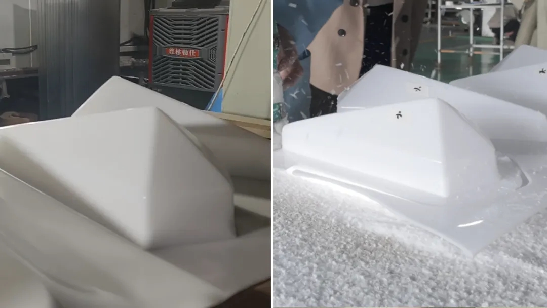 切割打磨:將冷卻后的燈箱面蓋進(jìn)行人工切割打磨處理。